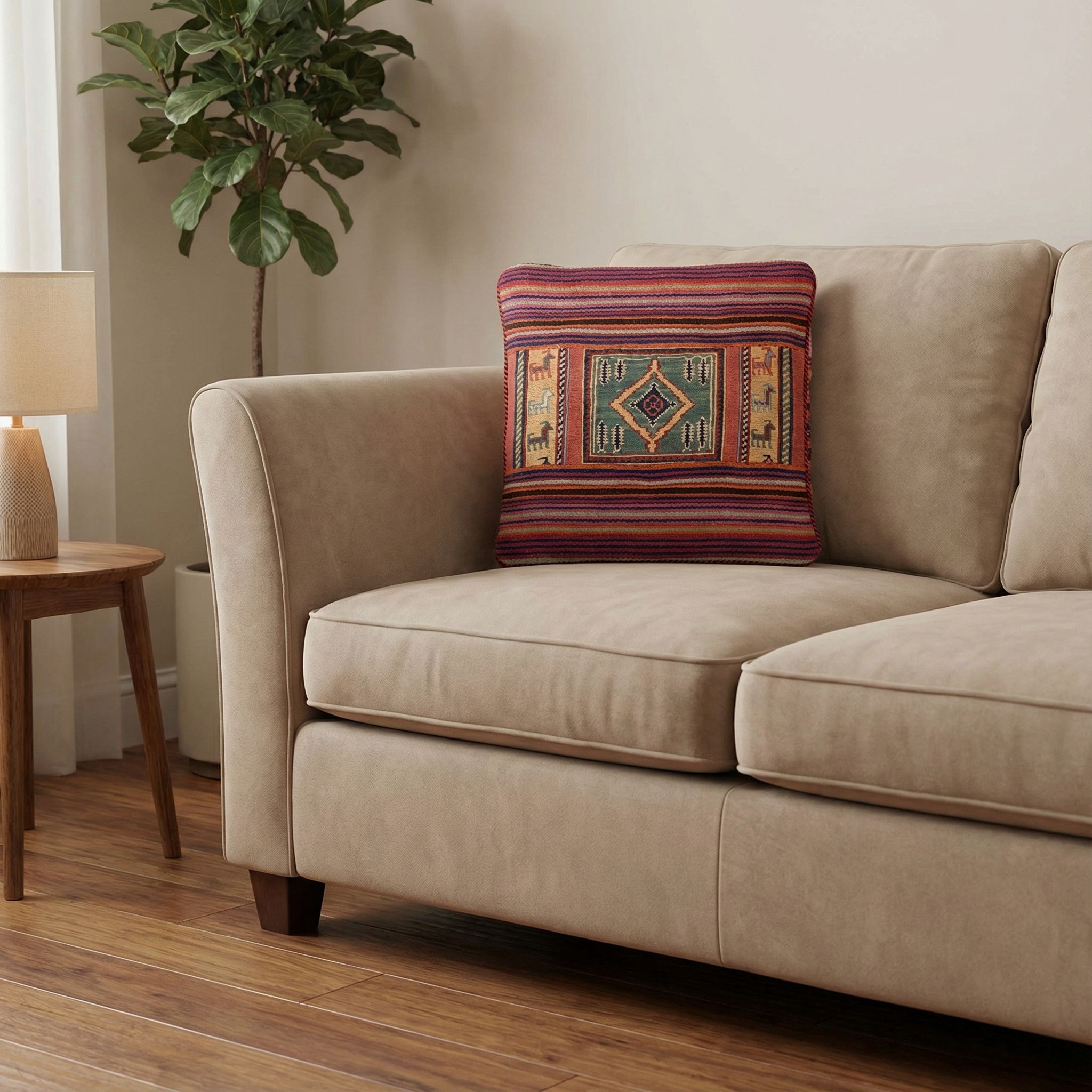 Afschar-Tabii-Kissen: Unsere hochwertigen persischen Kissen sind mit feinen handgemachten Kelims auf Vorder- und Rückseite ausgestattet, die wertvolle und authentische Stücke der persischen Nomadenkultur sind und keine Massen- oder Industrieware darstellen. Die Vorderseite ziert ein echter und feiner Sumack-Kelim, während die übrigen Flächen mit alten oder antiken Djidjim-Kelims bedeckt sind. Diese Kelims werden aus kostbarer handversponnener Schafwolle gefertigt und mit Pflanzenfarben gefärbt. Jedes Kissen ...mehr Infos zur Herkunft