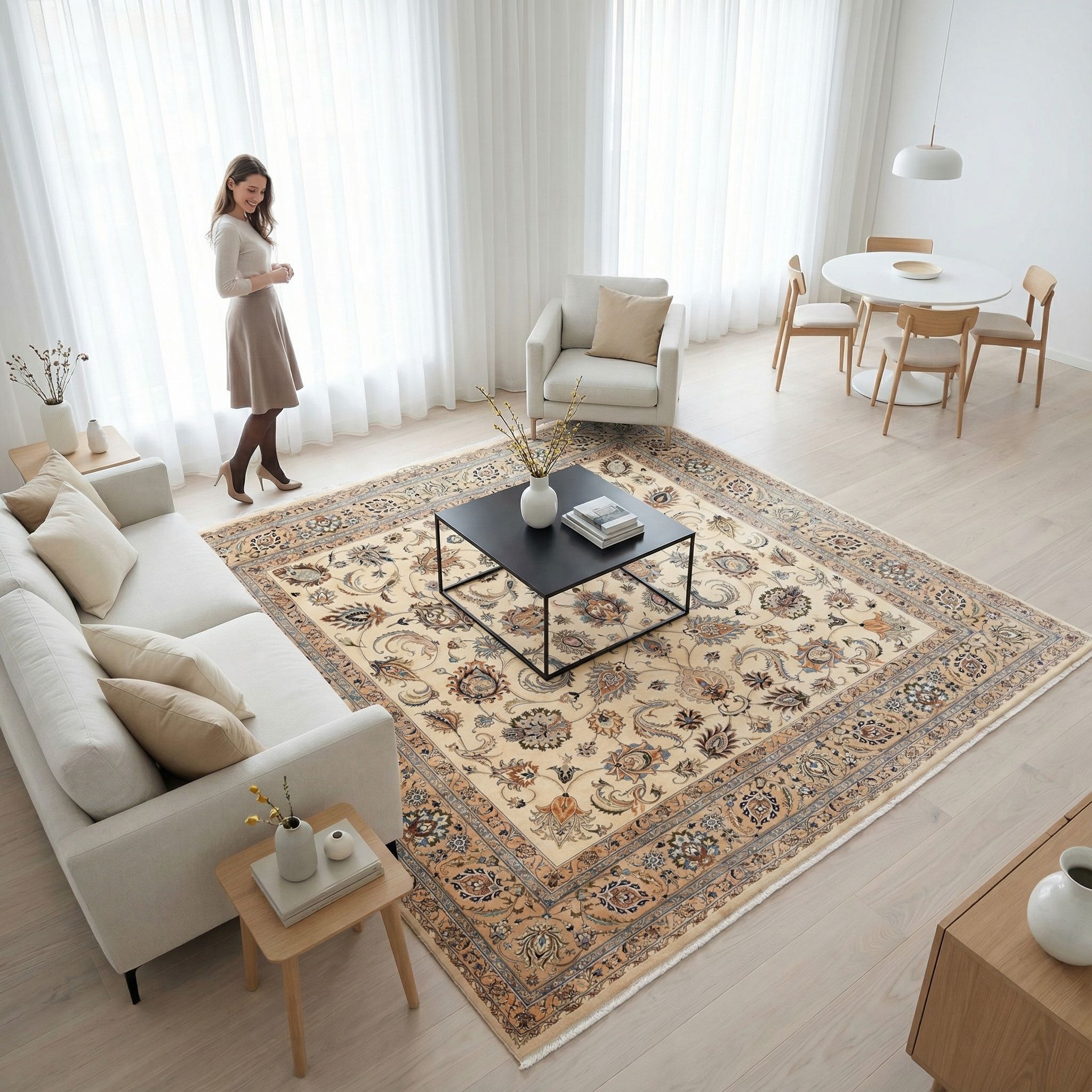 Unsere handgeknüpften Teppiche sind reine Handarbeit aus erlesenen Naturmaterialien. Echte Knoten sowie Schuss- und Kettfäden verleihen ihnen außergewöhnliche Langlebigkeit, Tiefe und bleibenden Wert - jeder Knoten ein Ausdruck echter Handwerkskunst. Handgefertigt und komplett ohne Kleber - für eine authentische, langlebige Qualität.Handgeknüpfte Teppiche - ob klassische Orientteppiche oder moderne Designs - lassen sich fachgerecht waschen, sind für den täglichen Gebrauch ...