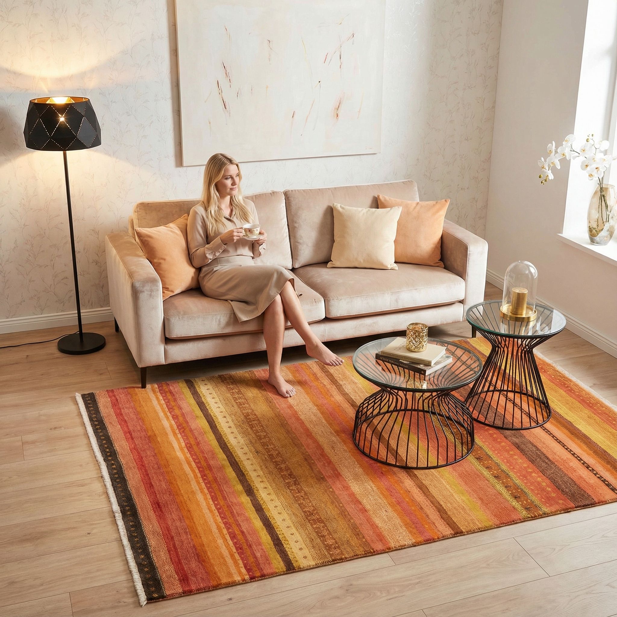 Unsere handgeknüpften Teppiche sind reine Handarbeit aus erlesenen Naturmaterialien. Echte Knoten sowie Schuss- und Kettfäden verleihen ihnen außergewöhnliche Langlebigkeit, Tiefe und bleibenden Wert - jeder Knoten ein Ausdruck echter Handwerkskunst. Handgefertigt und komplett ohne Kleber - für eine authentische, langlebige Qualität.