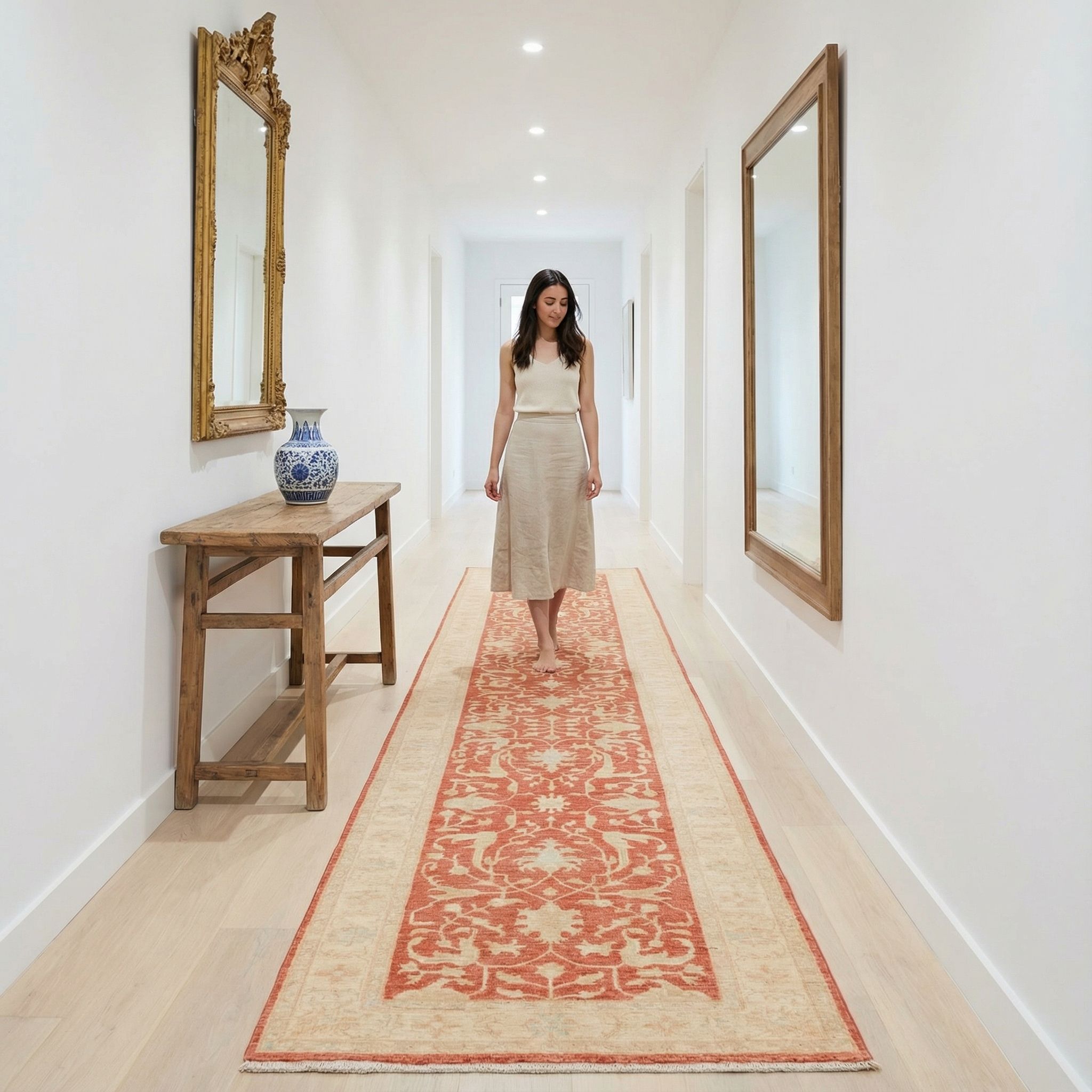 Als bewusster Stilbruch im Contemporary-Style eingesetzt, durchbricht dieser hochwertige Ziegler-Läufer die kühle Strenge moderner Architektur und sorgt für sofortige Wärme und Seele im Raum. Das zeitlose Design und die sanften Farben bilden einen spannenden Kontrast zu minimalistischen Möbeln und glatten Oberflächen, was dem Interieur eine unverwechselbare Tiefe und Raffinesse verleiht. Die handwerkliche Perfektion garantiert, dass dieses Stück neben modernem High-End-Design als echtes Luxusobjekt besteht und nicht als Fremdkörper wirkt. Verbinden Sie puristische Ästhetik mit der emotionalen Kraft und der Geschichte traditioneller Knüpfkunst für ein Wohngefühl der Extraklasse.