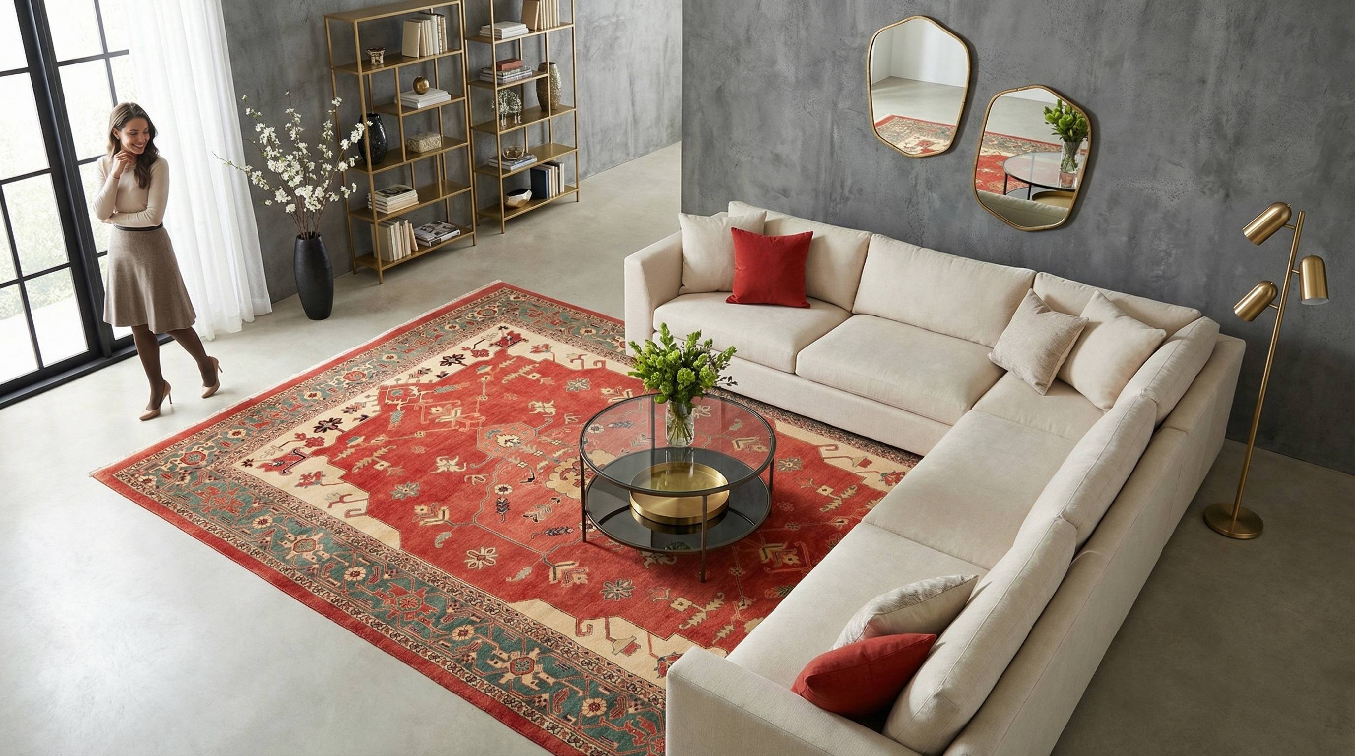 Dieser handgeknüpfte Ghadimi-Teppich aus dem Hause Mesgarzadeh besticht durch seine dominierende rote Hauptfarbe, die eine warme und einladende Atmosphäre schafft. Ergänzt wird das Rot durch elegante Beigenuancen und ein tiefes Blau, die zusammen eine harmonische Farbkomposition ergeben. Die Musterung ist traditionell und zeigt florale sowie geometrische Motive, die dem Teppich seinen charakteristischen persischen Charme verleihen. Jeder Ghadimi ist ein Unikat, signiert und nummeriert, und ...mehr Beschreibung