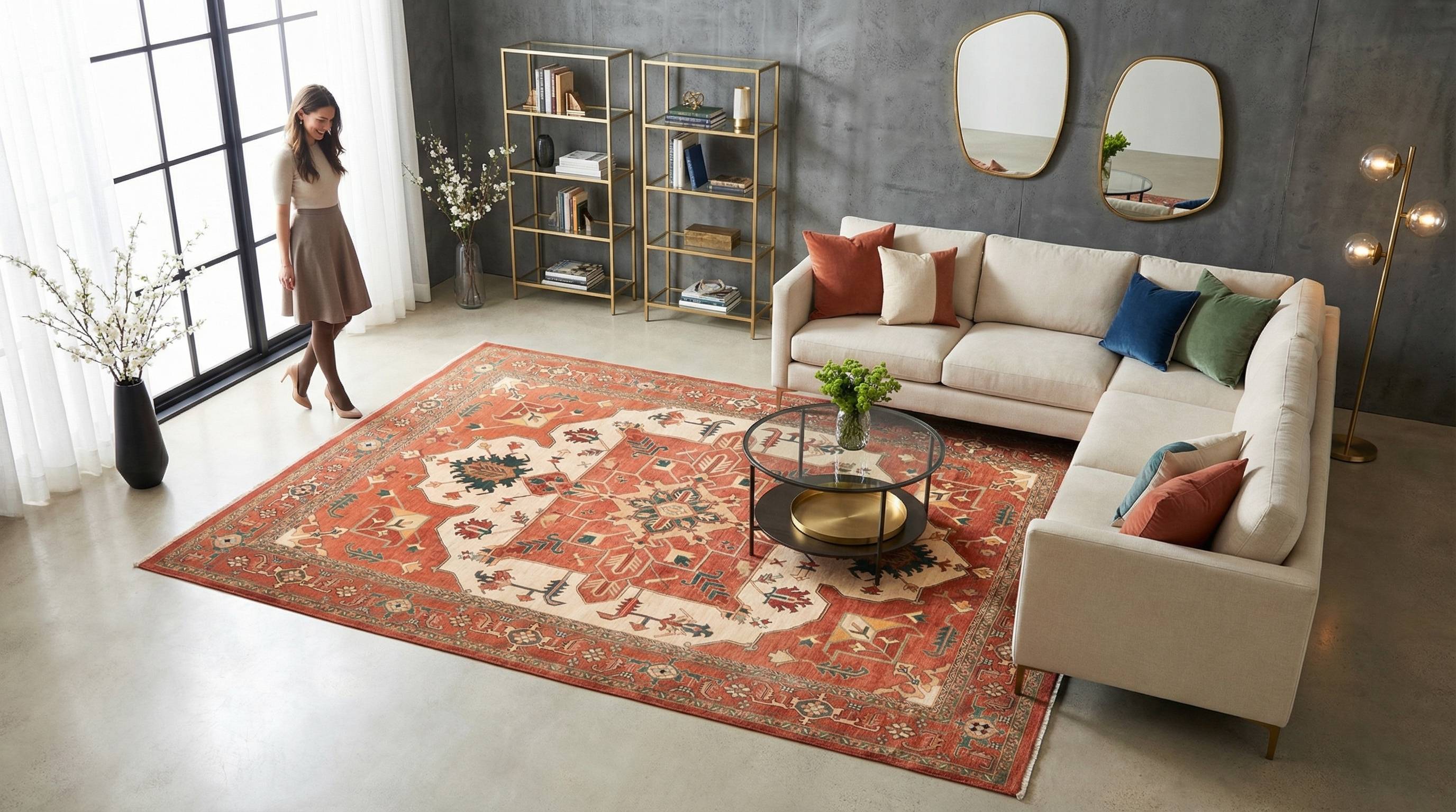 Dieser Ghadimi-Teppich aus dem Hause Mesgarzadeh strahlt in einem warmen Rot als Hauptfarbe, das die Basis für seine beeindruckende Musterung bildet. Begleitet wird das Rot von einem sanften Cremeweiß, das die Details hervorhebt und Tiefe verleiht. Ein dunkles Blau ergänzt die Farbpalette, setzt Akzente und verleiht dem Teppich eine edle Ausstrahlung. Die Musterung ist komplex und reich verziert, inspiriert von traditionellen Heriz-, Serapi- und Bachshayesch-Designs. Sie vereint florale ...mehr Beschreibung